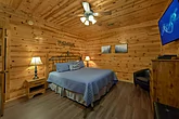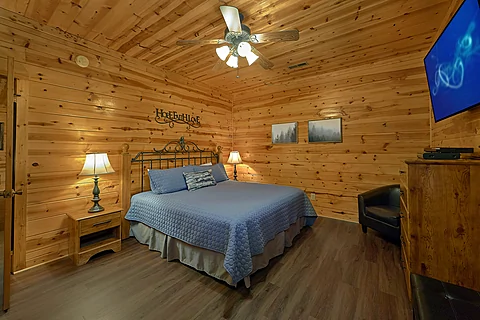When you're ready to rest, you can look forward to sleeping in one of the two bedrooms. On the main level, you'll discover the main bedroom with a king-sized bed, an in-room jetted tub, a flat-screen television, and a full bathroom with a gorgeous, tiled shower for an enjoyable night in the Smoky Mountains.